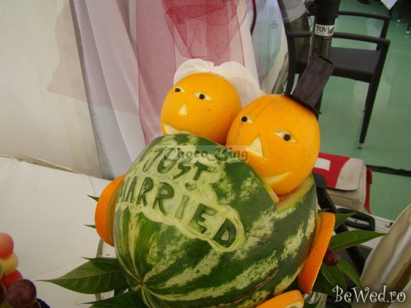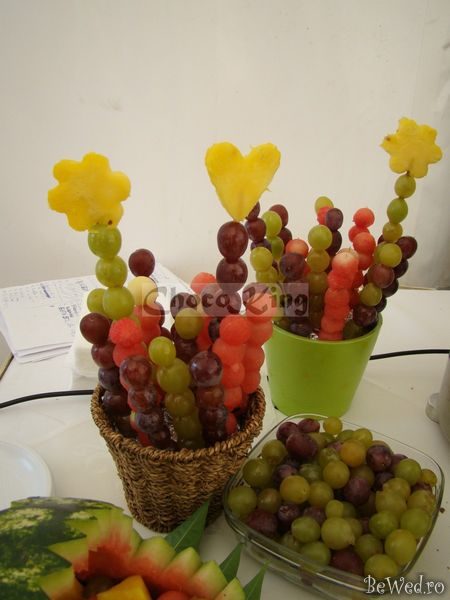 Pentru un plus de eleganta si rafinament, adaugam aranjamente personalizate de fructe, care vor intregi un bufet suedez ce va impresiona invitatii la orice nunta sau petrecere.