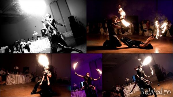 Focul a fascinat oamenii dintotdeauna prin sensurile sale mistice si prin fanteziile magice. Se stie ca focul este un simbol al purificarii, un tribut adus celor care il invoca... focul fascineaza privirile, uneste fortele si atinge spiritele oamenilor. O legenda spune ca ritualul dansului cu flacarile va indeparta fortele malefice si va purifica drumul proaspetilor miri, luminandu-le calea vietii si aprinzand pasiunea! Mirii doritori pot participa activ la acest show incredibil - la finalul acestuia fiind invitati sa se fotografieze cu cei doi fachiri specializati.