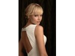 Intalnim aplicatii de cristale si margele atat pe banda din spate ce leaga cele doua bretele, cat si pe partea inferioara a rochiei.