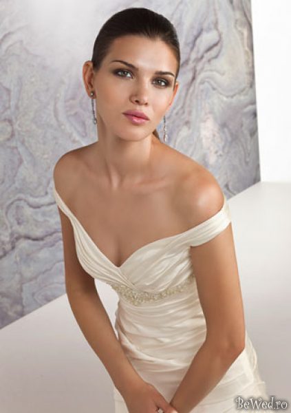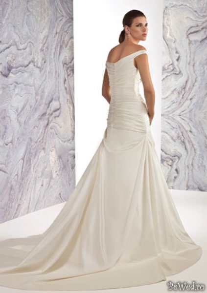 Modelul de rochie Cadence este croit special pentru a va scoate in evidenta latura sensibila dar sic inacelasi timp.Best Bride va ofera acest model spre inchiriere. Croiala simpla a rochiei este din satin cu corsetul in v ce se prelungeste pe linia corpului scotand in evidenta o silueta de invidiat, iar sub bust gasim aplicatii de cristale.Acest model are bretele ce cad usor pe umeri si trena ce poate fi prevazuta cu sistem de prindere.